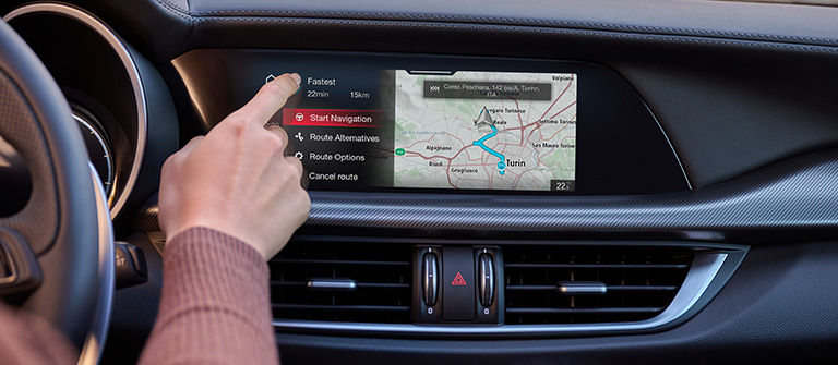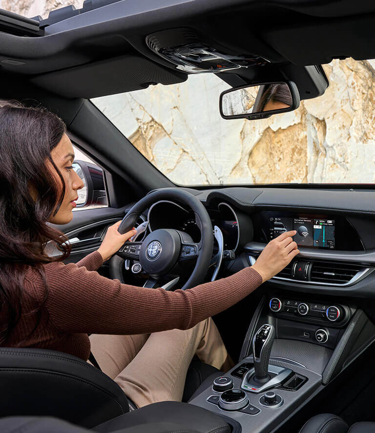 Conectado al mundo. Y a su vehículo. El sistema Alfa™ Connect es un conjunto de servicios que proporciona conectividad completa con Android Auto™ y Apple CarPlay.